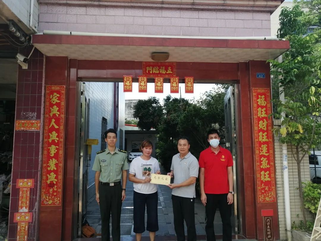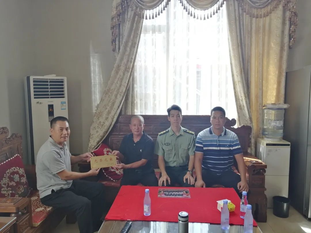 為進(jìn)一步鞏固和發(fā)展軍政軍民團(tuán)結(jié),弘揚(yáng)新時(shí)代擁軍優(yōu)屬的優(yōu)良傳統(tǒng),推進(jìn)軍人榮譽(yù)體系建設(shè),營(yíng)造關(guān)愛軍人的濃厚社會(huì)氛圍,7月15日上午,阜沙鎮(zhèn)武裝部、退役軍人服務(wù)中心聯(lián)合走訪今年入伍的6名新兵家屬,為其家庭懸掛“光榮之家”門牌,送上入伍電子相冊(cè),了解新兵在部隊(duì)的訓(xùn)練、學(xué)習(xí)和生活情況,增強(qiáng)軍屬家庭的榮譽(yù)感和自豪感,讓他們切實(shí)感受到黨和政府的關(guān)愛和溫暖。 在新兵周志偉家中,其父親周錦元自豪地說:“雖然非常舍不得志偉離開我們,但是送他到部隊(duì)鍛煉,為國(guó)家作貢獻(xiàn),心里還是很高興的,也非常自豪。今天你們來給我家掛光榮牌、送相冊(cè),我們?nèi)倚睦锱?,非常感謝黨和政府對(duì)我們的關(guān)心?!?/p>一人參軍,全家光榮 一塊刻著“光榮之家”的小小牌匾 對(duì)軍屬家庭來說卻是一份特殊的“禮物” 牌匾雖小