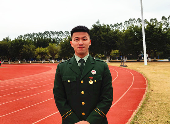 “小時(shí)候,我看過(guò)一部名為《烈火雄心》的電視劇,講的是消防員奮勇?lián)尵壬詽鉄熆简?yàn)斗志、以烈火洗煉人生的故事,那時(shí)我就對(duì)執(zhí)行任務(wù)類(lèi)型的職業(yè)非常向往。再加上男生打小對(duì)飛機(jī)、槍支武器都有一種特殊的感覺(jué),那時(shí)候就在想,有機(jī)會(huì)一定要去部隊(duì)歷練一番試試?!比尾敻嬖V記者,大二那年,他終于夢(mèng)圓軍營(yíng),服役于武警河南總隊(duì)某中隊(duì)?!?個(gè)月的新兵連非常充實(shí),隊(duì)列訓(xùn)練、拉練、長(zhǎng)途行軍......讓我印象深刻的是在行軍過(guò)程中,不管去到什么地方,只要一身軍裝在身,當(dāng)?shù)氐男∨笥讯紩?huì)朝我敬禮,老百姓也特別友善,讓我感到非常自豪,這種軍民魚(yú)水情讓我感覺(jué)非常好?!?/p> 服役期間,因表現(xiàn)突出,任伯聰被評(píng)為“優(yōu)秀義務(wù)兵”,于2019年退出現(xiàn)役。離開(kāi)部隊(duì)后,他重返大學(xué)校園完成學(xué)業(yè),并加入了學(xué)校的國(guó)防教育服務(wù)中心,為學(xué)校的征兵宣傳工作奔走發(fā)聲。在校期間,任伯聰從未忘記自己曾經(jīng)是一名軍人。“我堅(jiān)持每天長(zhǎng)跑10公里,練習(xí)單杠,也一直有按照之前部隊(duì)的訓(xùn)練標(biāo)準(zhǔn)來(lái)保持鍛煉。”  左一為任伯聰。