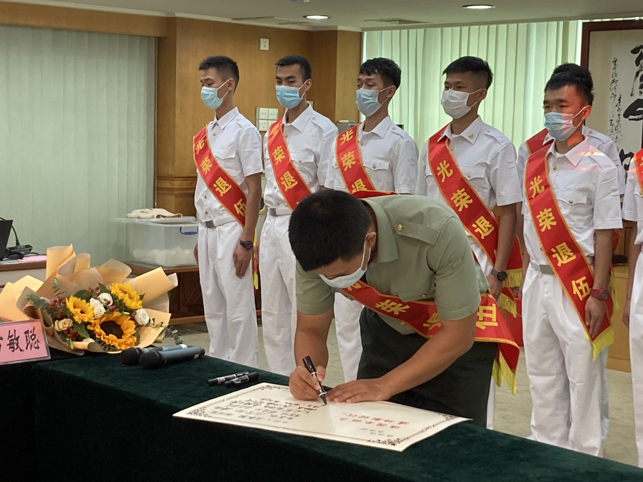 歡迎儀式上, 黨委副書(shū)記、鎮(zhèn)長(zhǎng)黃景輝,黨委委員李海龍、副鎮(zhèn)長(zhǎng)候選人余添宏,對(duì)此次返鄉(xiāng)的21名退役軍人表示熱烈的歡迎和親切的問(wèn)候,并表示,退役士兵是家鄉(xiāng)人民的驕傲,是祖國(guó)和平安定的功臣和棟梁,是能力過(guò)硬的高素質(zhì)復(fù)合型人才,經(jīng)過(guò)軍旅生活的磨礪,身體變得強(qiáng)健、意志變得堅(jiān)強(qiáng)、思想變得成熟、行為變得理智,相信會(huì)在人生的不同階段、不同崗位上繼續(xù)出色工作、活出精彩人生!