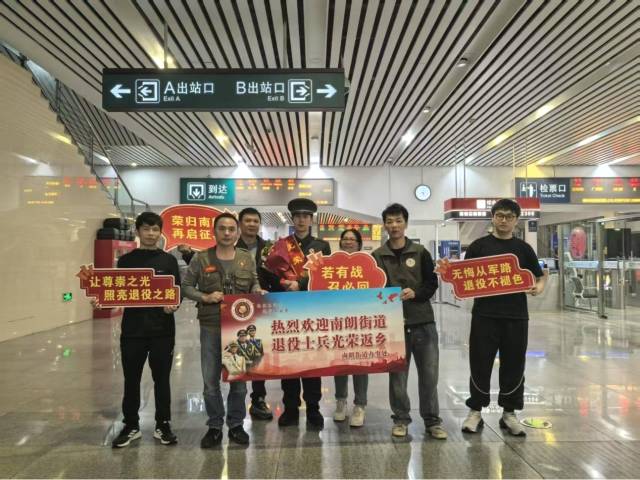 精心組織,讓榮歸之路更有溫度 當(dāng)天,街道退役軍人服務(wù)中心工作人員早早守候在出站口,現(xiàn)場(chǎng)“熱烈歡迎退役士兵光榮返鄉(xiāng)”“榮歸南朗 再啟征程”等橫幅高懸,氣氛莊重而溫馨。當(dāng)身著戎裝、英姿颯爽的退役士兵陸續(xù)走出抵達(dá)通道,等候多時(shí)的工作人員與家屬立即上前,獻(xiàn)上鮮花、披上綬帶,用熱烈的掌聲和親切的問(wèn)候迎接最可愛(ài)的人回家。“辛苦了!”“歡迎回家!”一句句暖心話(huà)語(yǔ),驅(qū)散了旅途疲憊,更讓尊崇之光閃耀歸途。 工作人員與退役士兵促膝交談,詳細(xì)詢(xún)問(wèn)服役經(jīng)歷、旅途行程與返鄉(xiāng)規(guī)劃,向他們致以崇高敬意,衷心感謝他們把最美好的青春奉獻(xiàn)給國(guó)防事業(yè),用忠誠(chéng)與擔(dān)當(dāng)守護(hù)萬(wàn)家安寧。 精準(zhǔn)服務(wù),讓政策落地更有速度 為打通服務(wù)保障“最后一公里”,迎接現(xiàn)場(chǎng)同步設(shè)立政策咨詢(xún)點(diǎn),工作人員為每位返鄉(xiāng)士兵送上“政策大禮包”,面對(duì)面講解退役軍人優(yōu)待撫恤、就業(yè)創(chuàng)業(yè)扶持、報(bào)到落戶(hù)流程、社會(huì)保險(xiǎn)接續(xù)、組織關(guān)系轉(zhuǎn)接、優(yōu)待證辦理等“一站式”服務(wù)事項(xiàng),耐心細(xì)致解答疑問(wèn),確保退役士兵“出站即知政策、返鄉(xiāng)即享服務(wù)”,讓暖心服務(wù)貫穿榮歸全程。 “沒(méi)想到剛下飛機(jī)就有家鄉(xiāng)人迎接,還送來(lái)了這么詳細(xì)的政策指引,太貼心了!”退役士兵們表示,脫下軍裝仍是戰(zhàn)士,回到家鄉(xiāng)將繼續(xù)發(fā)揚(yáng)人民軍隊(duì)聽(tīng)黨指揮、能打勝仗、作風(fēng)優(yōu)良的光榮傳統(tǒng),盡快轉(zhuǎn)變角色、適應(yīng)新崗,以飽滿(mǎn)熱情投身家鄉(xiāng)建設(shè),在新的征程上再立新功。