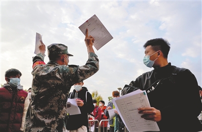 應(yīng)征青年核酸檢測合格后,在帶檢員的引導(dǎo)下進入體檢環(huán)節(jié),全程實行全封閉式管理。