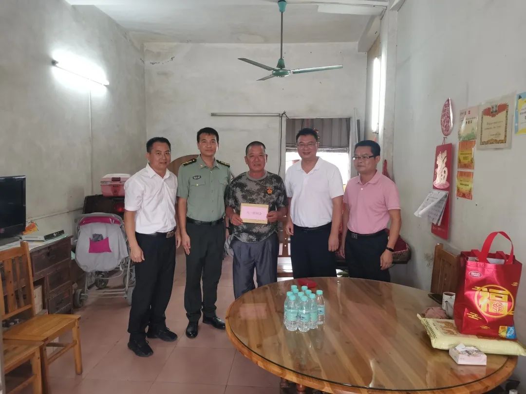 在中國人民解放軍建立94周年來臨之際,為進(jìn)一步弘揚(yáng)“擁軍優(yōu)屬、擁政愛民”的光榮傳統(tǒng),關(guān)心關(guān)愛軍人軍屬,7月30日上午,阜沙鎮(zhèn)黨委副書記、鎮(zhèn)長李健華帶領(lǐng)公共服務(wù)辦、武裝部、退役軍人服務(wù)中心到現(xiàn)役、退役軍人家中開展慰問活動(dòng)。