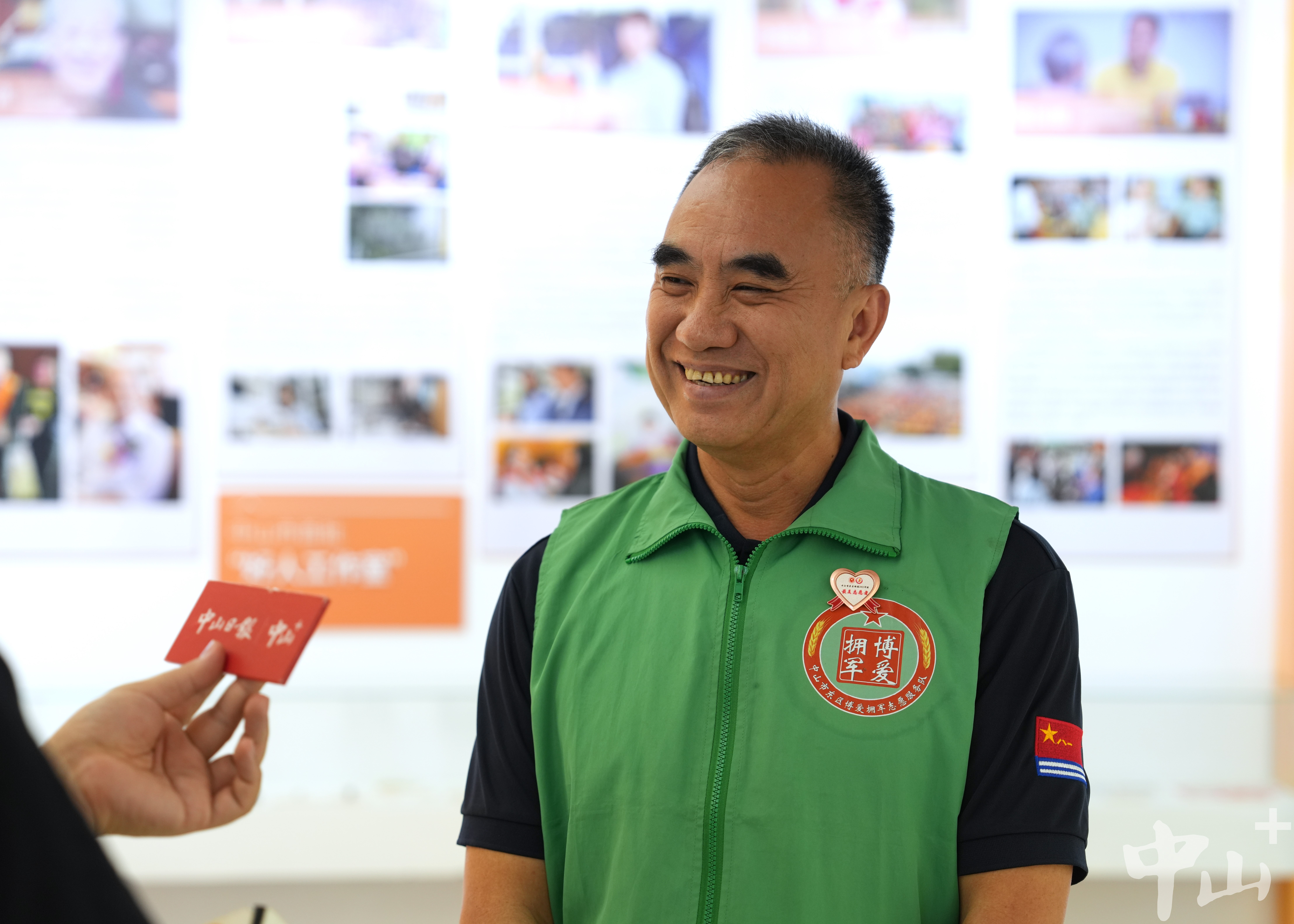 作為一名退伍軍人,李克有很多曾一起在戰(zhàn)場上出生入死的戰(zhàn)友,其中不乏已經(jīng)為國捐軀的烈士。自2007年起,他便自發(fā)組織尋找犧牲的中山籍戰(zhàn)友,先后6次帶隊前往廣西邊境的多個烈士陵園,成功尋到29名犧牲戰(zhàn)友信息,并將相關信息報送給中山市退役軍人事務局。 “我有一位戰(zhàn)友,寧愿把生的希望留給其他人,19歲不到就犧牲在戰(zhàn)場上。他們已經(jīng)離我們而去,更重要的是我們能為他們做些什么。所以逢年過節(jié)我都會看望他們的家人,把歡樂也帶給老人家?!崩羁苏f。 2016年,得知戰(zhàn)友的女兒患先天性心臟病,須進行心肺聯(lián)合移植手術,李克立即帶頭捐款,并聯(lián)系政府相關部門和電視臺,通過媒體報道讓更多愛心人士關注到了這位困難老兵。在他的多方奔走下,社會各界紛紛伸出援助之手,募集醫(yī)藥費40余萬元,助戰(zhàn)友的女兒順利完成了手術。 牽頭成立志愿服務隊 延續(xù)志愿精神 作為一名有著30多年志愿服務經(jīng)歷的資深志愿者,李克的生活已經(jīng)與志愿分不開。他的身上始終有一抹綠色:在軍營,是守衛(wèi)國門的綠軍裝;在社區(qū),是服務群眾的綠馬甲。在人民群眾需要的地方,李克每次都沖在最前線。 “2020年疫情暴發(fā)時,很多人都響應號召待在家里,我覺得作為一個打過仗的老兵,我總得站出來做點事?!睕]有過多考慮,李克第一時間加入到了志愿者隊伍中,并在社區(qū)堅守了整整60天。當時防護物資匱乏,李克還自掏腰包托人在廣州購買了6萬元左右的防護物資,全部捐贈給了在一線抗疫的工作人員。 近年來,李克還積極捐資助學、支援災區(qū)、扶危濟困,連續(xù)6年資助6名困難學生,為汕尾市陸河中學捐贈10套多媒體電腦設備,堅持參與無償獻血直到60歲。 2018年起,李克擔任文明城市巡查監(jiān)督員,奔走在街道各個路口、每條小巷,整理亂停亂放的共享單車,清理“牛皮癬”小廣告,保障街頭巷尾干凈衛(wèi)生。同一年,為更有組織地開展志愿活動,李克牽頭成立了一支以退役軍人為主導的東區(qū)博愛擁軍志愿服務隊,把戰(zhàn)友們凝聚在一起,共同為社會作貢獻。如今,這支志愿服務隊已從最初的8名成員,逐漸壯大至400多人,成為服務社會的一支生力軍。 講好好人故事,傳承紅色文化 4月19日上午,記者在“中山好人館”見到了正在擔任“輪值館長”的李克。從去年1月開始,他每個月都參與輪值,先后為140多場活動、1萬多名市民群眾義務講解博愛之城的凡人善舉、好人大愛。  正在中山好人館輪值的李克。記者 劉萬杰 攝