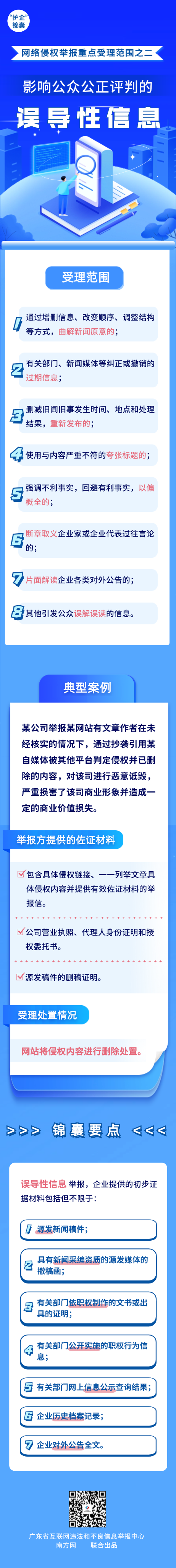 為有效助力企業(yè)維護自身網(wǎng)絡合法權益,廣東省互聯(lián)網(wǎng)違法和不良信息舉報中心精心準備了“護企”錦囊,結合案例帶大家了解涉企網(wǎng)絡侵權信息的重點受理范圍,今天推出重點受理范圍之二——影響公眾公正評判的誤導性信息。