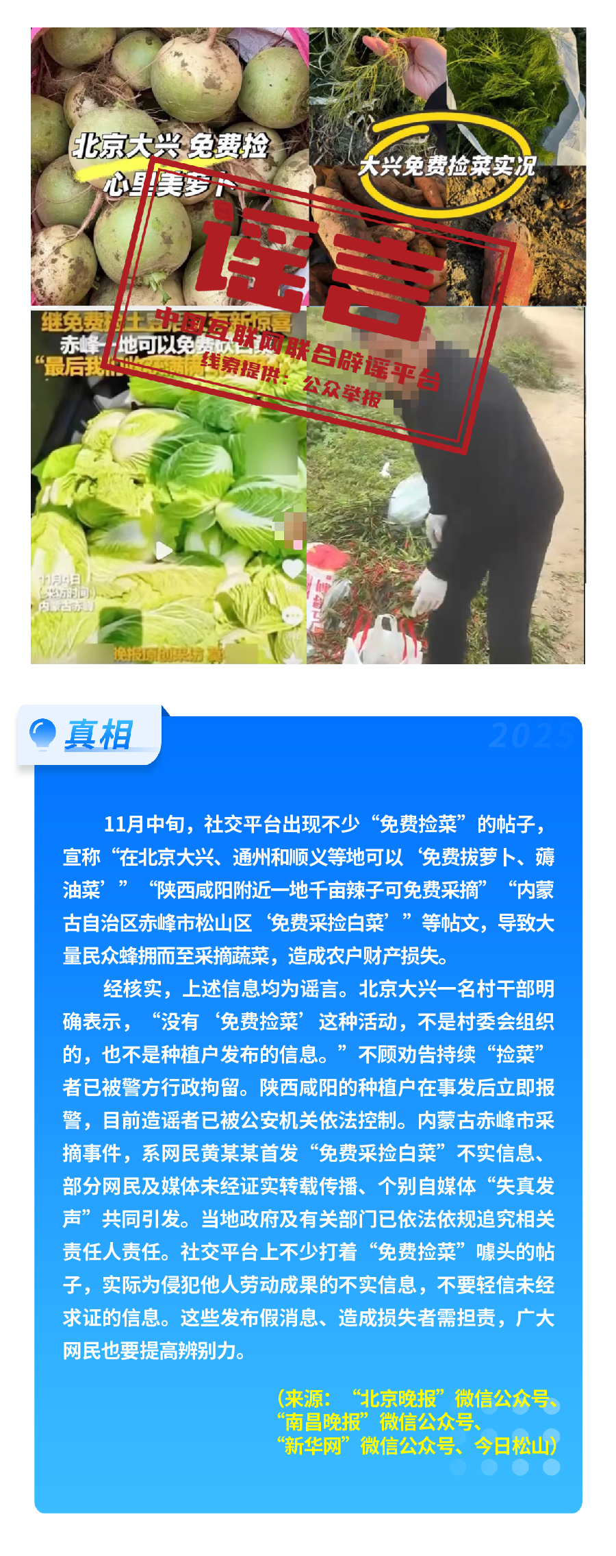 此外,“免費(fèi)撿菜”傳言在多地蔓延,北京大興、內(nèi)蒙古赤峰、陜西咸陽等地,均有群眾因不實(shí)信息誤導(dǎo)涌入農(nóng)田哄搶,導(dǎo)致農(nóng)戶財(cái)產(chǎn)受損;“充‘劣質(zhì)電’會導(dǎo)致新能源汽車自燃”的說法,毫無科學(xué)依據(jù),實(shí)為造謠者為博流量惡搞。另有“高見觀潮”“象視汽車”“987瘋狂奶爸”等賬號在多平臺編發(fā)涉汽車行業(yè)的虛假信息,惡意抹黑詆毀汽車企業(yè)、汽車產(chǎn)品,損害汽車行業(yè)發(fā)展形象。