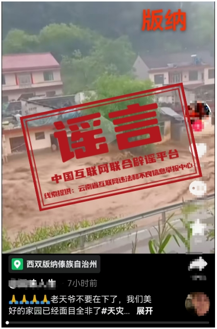 辟 謠  云南辟謠一則西雙版納傣族自治州汛情謠言